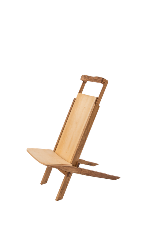 Der zum praktischen Transportformat zusammengesteckte Stuhl, lässt sich mit seinem Gewicht von knapp 4 kg gut in einer Hand tragen.