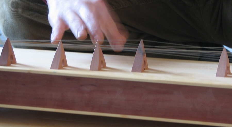 Monochord 21-saitig (cis), Tambura 4-saitig (Gis, cis, cis, Cis), Koto 9-saitig, Feinstimmperlen.